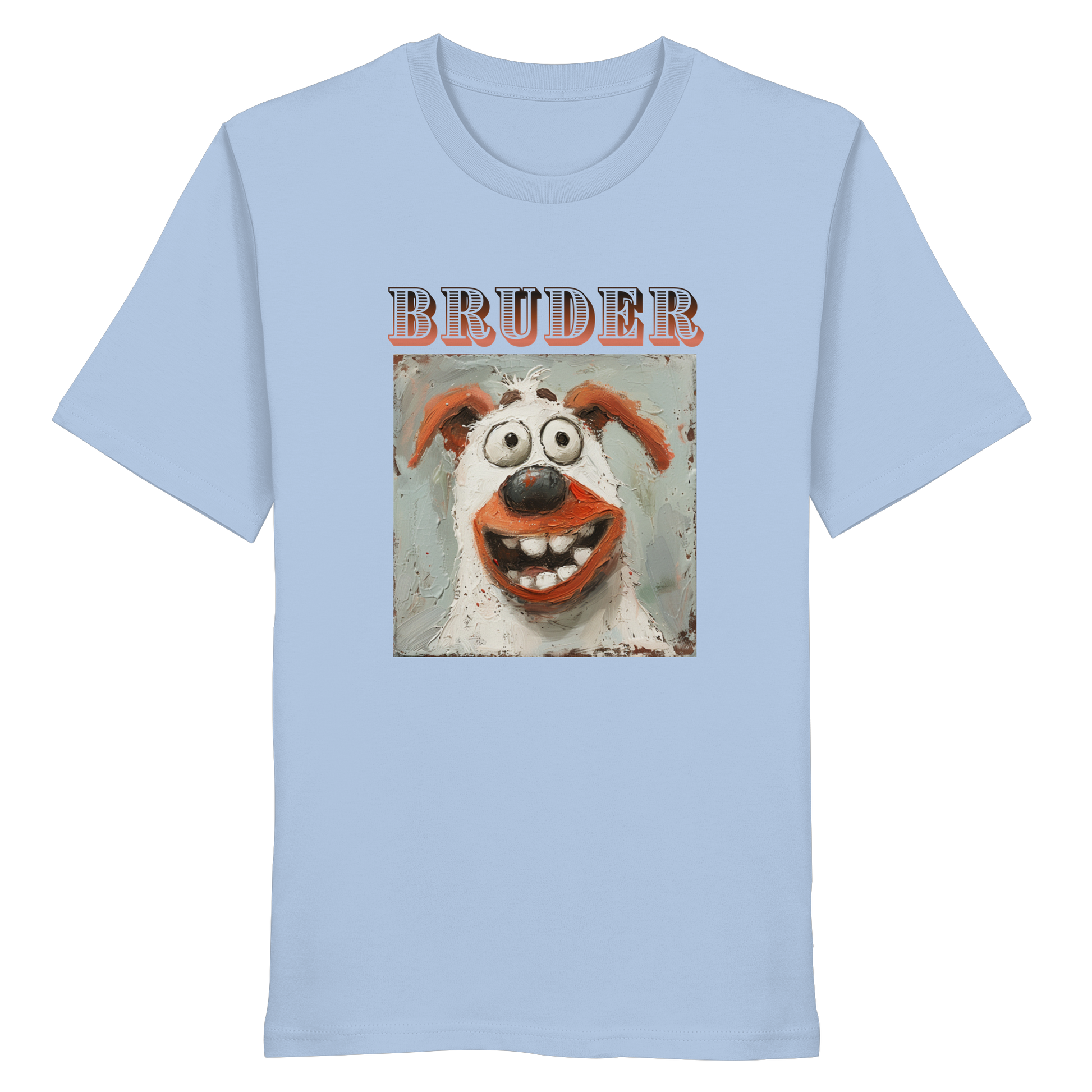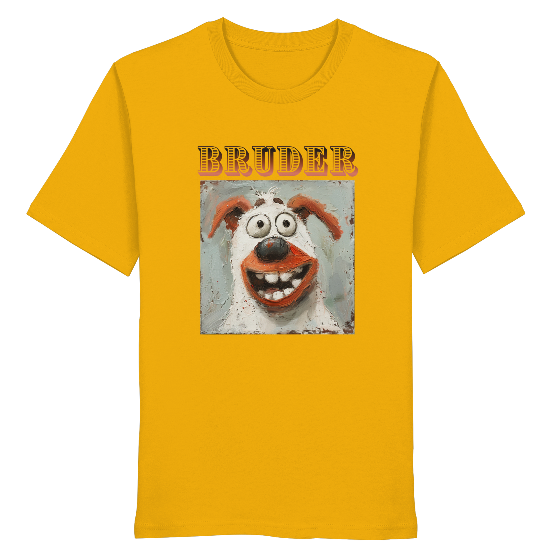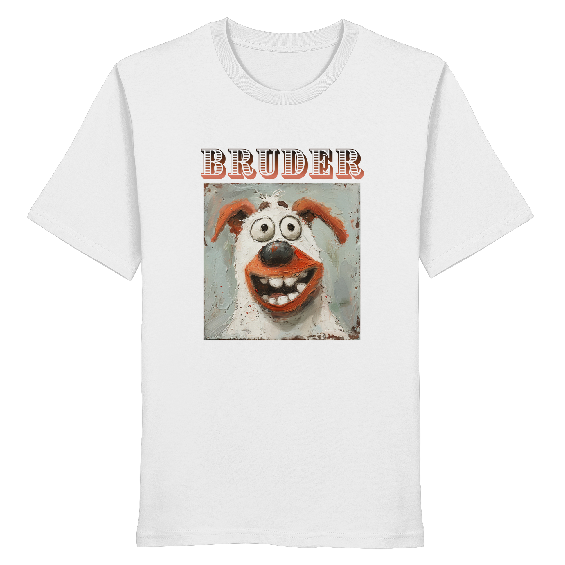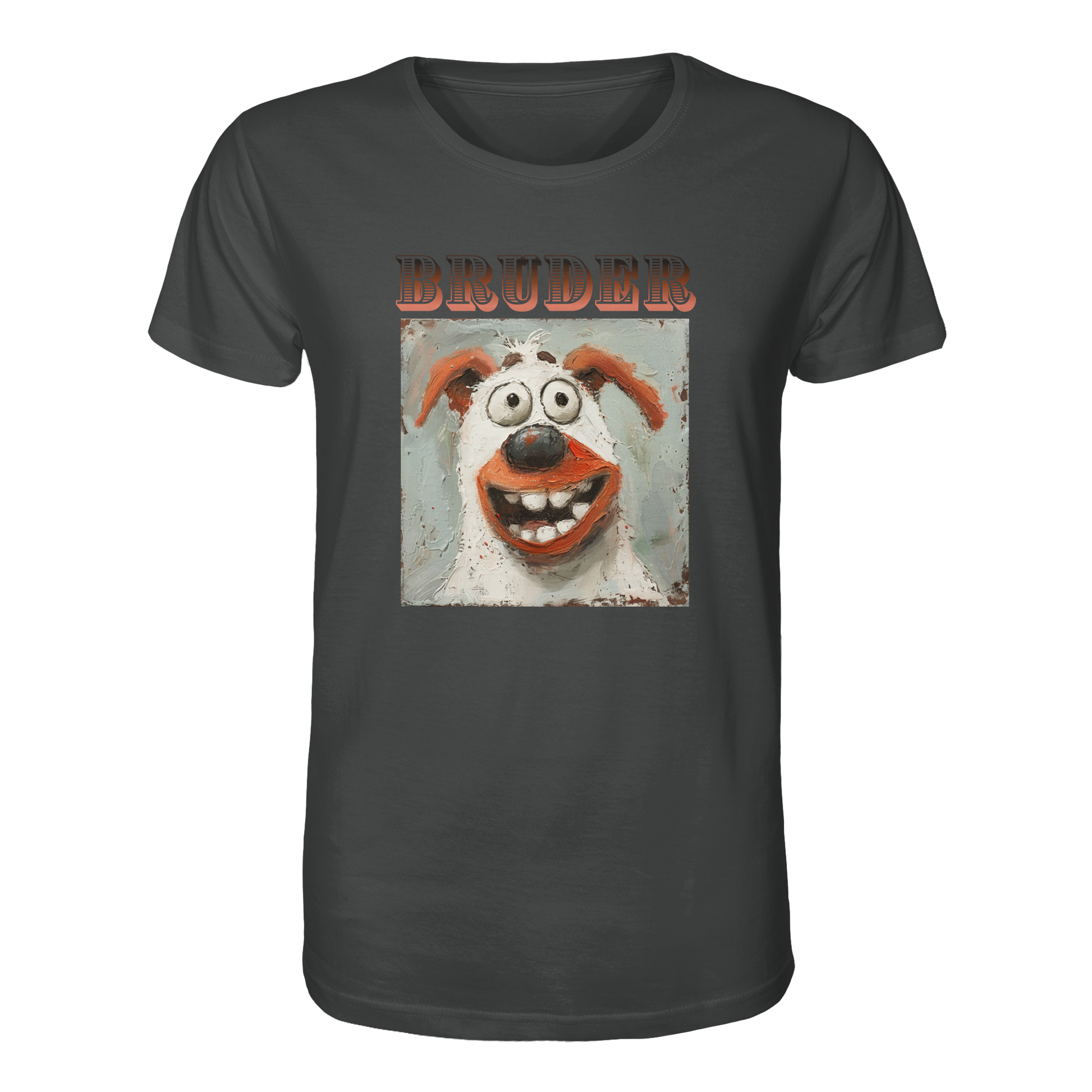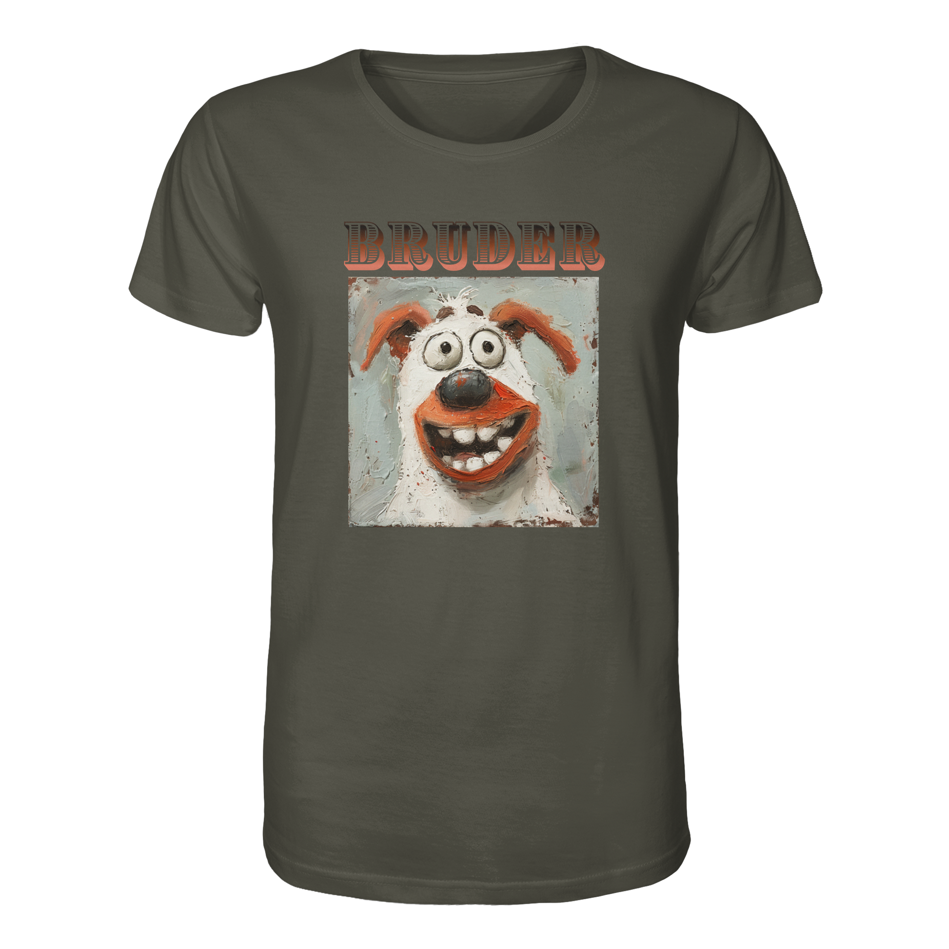 Unser BRUDER - Organic Shirt ist mehr als nur ein Kleidungsstück; es ist eine Hommage an die Natur. Mit einem lebendigen und humorvollen Hundemotiv, das sofort ein Lächeln auf dein Gesicht zaubert, spiegelt dieses Design die ungezähmte Freude und den Charme der Tierwelt wider.